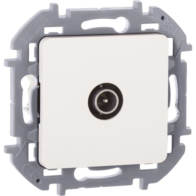 Розетка телевизионная для скрытого монтажа Inspiria, проходная для схемы "шлейф", затухание 14дБ, 4-862МГц, цвет "Белый". Предназначена для подключения нескольких ТВ приемников к антенне и используется в схеме "шлейф". Устанавливается в линии между антенной и оконечной розеткой.