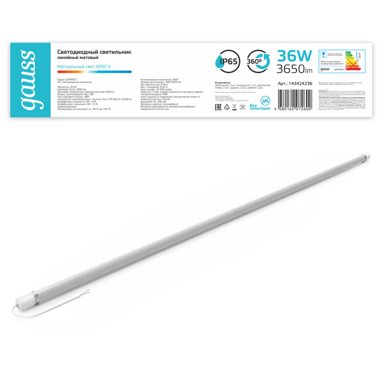 Светильник светодиодный Gauss IP65 1500*29*29мм 36Вт 3650lm 4000К COMPACT линейный матовый 1/30