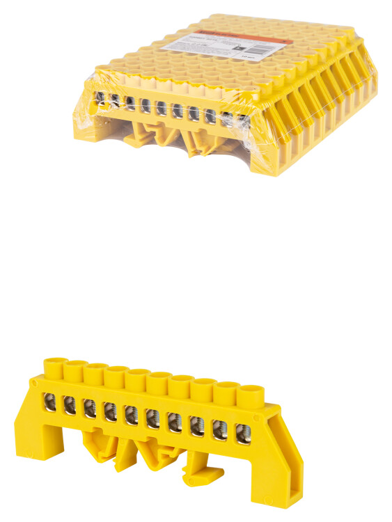Шина "PE" "земля" в желтом изоляторе на DIN-рейку 8x12мм TDM