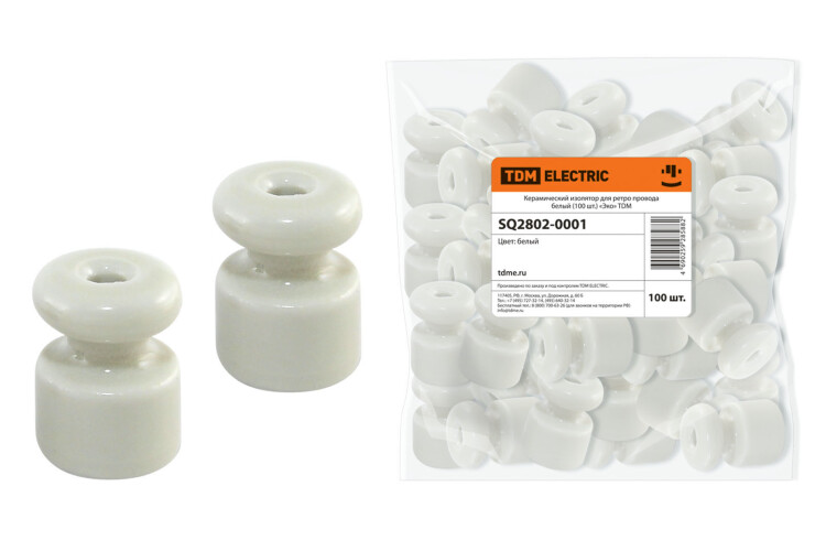 Керамический изолятор для ретро провода белый "Эко" TDM предназначен для крепления витого провода к стене при прокладке открытым способом.