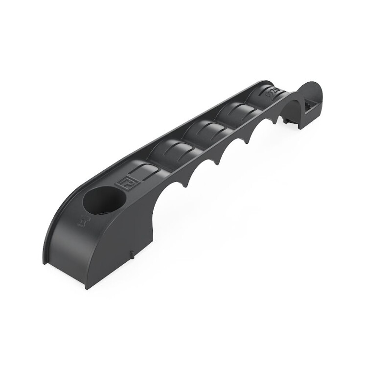 Держатель труб для прямого монтажа односторонний на 5 мест d20 Промрукав - это специализированный крепеж, предназначенный для крепления гофрированных и гладких пластиковых труб диаметром 20 мм. Держатель труб разработан для прямого монтажа, что позволяет осуществлять крепление монтажными пистолетами по бетонным поверхностям, но возможен монтаж и классическим способом, используя дюбели и саморезы. С помощью одностороннего держателя труб можно одновременно смонтировать и закрепить до 5 труб. Данную продукцию можно использовать при прокладке линии внутри помещений или под навесом. При необходимости допускается фиксировать край держателя, в том числе монтажным пистолетом, для обеспечения максимально возможной надежности фиксации трубы.