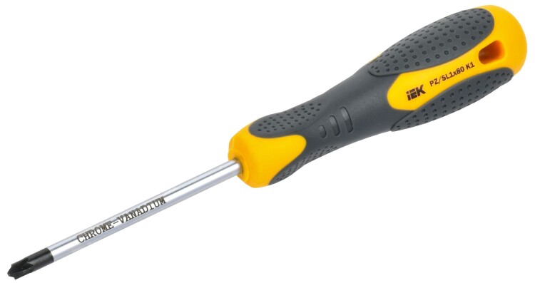 Отвертка универсальная К1 (Master) предназначена для закручивания и откручивания винтов и шурупов, изготовлена из хром-ванадиевой стали. Рукоятка из 2-х-слойной термопластичной резины PP+TPR.
