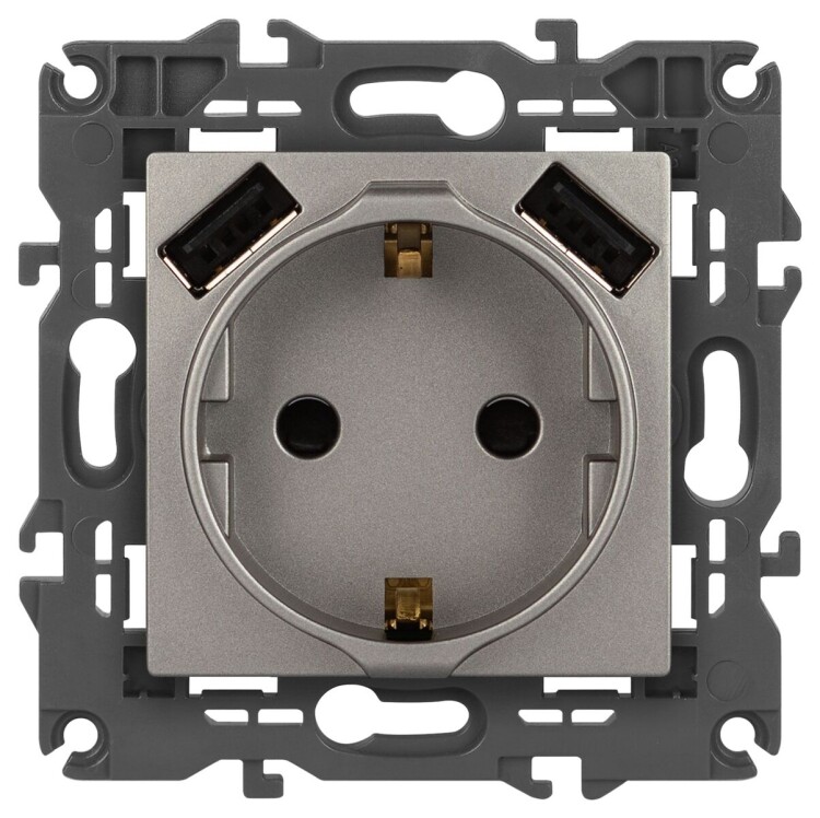 <p>Розетка с USB серии Эра Elegance цвет титан 14-4109-16. Номинальные характеристики силовой розетки 16А 250В, разъемов USB 3А 5В. Оснащена автоматическими клеммами для надёжной фиксации жил кабеля в механизме.</p>