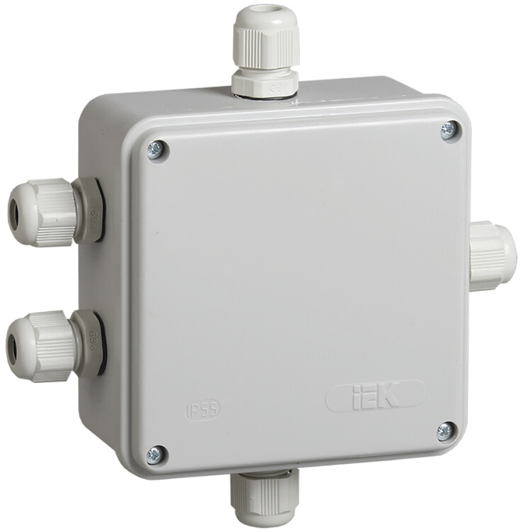Коробка КМ41330 распаячная для о/п 100х100х50 мм IP55 (RAL7035, гермовводы PG9 5 шт)