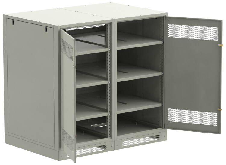 Шкафы LINEA B повышенной прочности со сварным каркасом и усиленными полками позволяют размещать АБ до 500 кг. на полке.