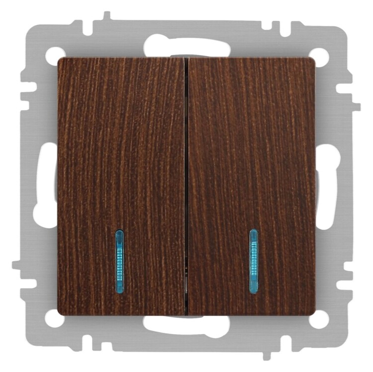 <p>Выключатель 2-клавишный с подсветкой серии Intro Accent скрытой установки механизм цвет венге 6-105-10. Номинальные характеристики 10А 250В. Выполнен из негорючего термопласта, оснащён винтовыми клеммами. Парные клеммы обеспечивают соединение шлейфом. Монтаж в подрозетник производится и на лапки, и на винты. Рамка приобретается отдельно. В серии представлены рамки до 5 постов: на 1 пост - 6-501-хх, на 2 поста - 6-502-хх, на 3 поста - 6-503-хх, на 6 поста - 4-504-хх, на 5 постов - 6-505-хх (где хх - цветовой код: 01 - белый, 01М - матовый белый, 02 - слоновая кость, 03 - алюминий, 04 - шампань, 05 - антрацит, 06 - перламутр, 07 - графит, 08 - бронза, 09 - титан, 10 - венге, 11 - сосна)</p>