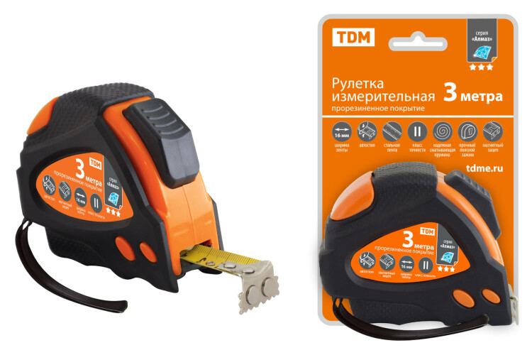 Преимущества: Функция автостоп – автоматическая фиксация выдвинутого измерительного полотна (в серии "Алмаз")