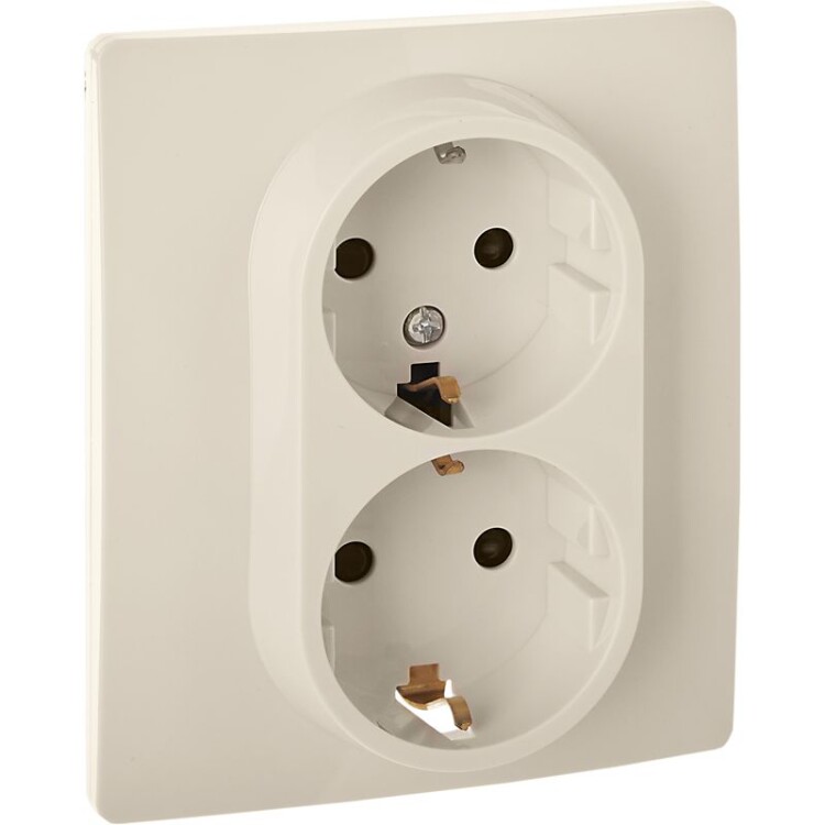 Розетка двойная с заземлением, с защитными шторками для скрытого монтажа Inspiria, цвет "Слоновая кость", максимальный ток 16А, напряжение ~250В, максимальная мощность 3680Вт, винтовые зажимы. Применяется для присоединения однофазных электрических потребителей к сети переменного тока в зданиях с проводкой с заземлением (с защитным проводником). Позволяет компактно разместить две розетки в одном устано вочном месте.