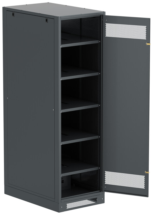 Шкафы LINEA B повышенной прочности со сварным каркасом и усиленными полками позволяют размещать АБ до 500 кг. на полке.