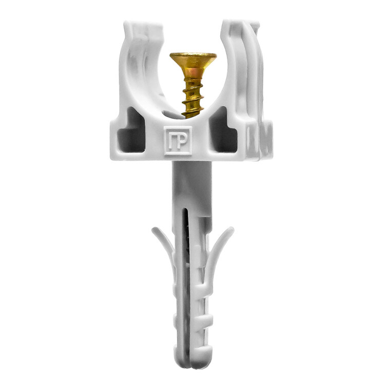 Предназначена для крепления гладких труб ПВХ или гофрированных труб одного диаметра к поверхности стен, потолков, полов или перегородок. Повышенная прочность и надежность клипсы за счет конструктивного объединения с дюбелем.