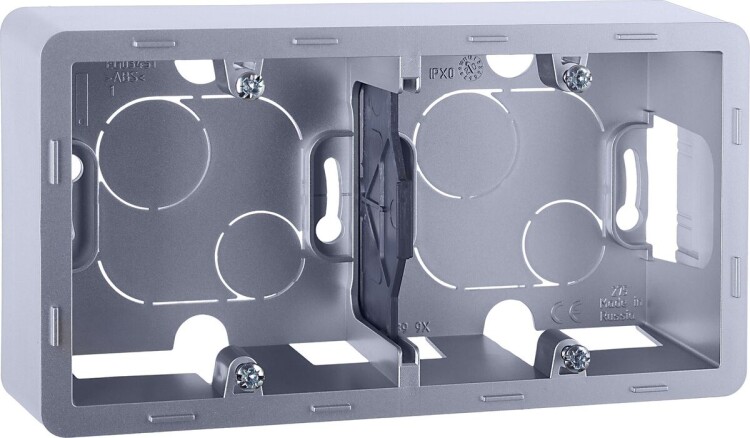 Коробка для накладного монтажа Inspiria, 2 поста, цвет "Алюминий". Коробка предназначена для накладного монтажа механизмов серии Inspiria и позволяет установить 2 механизма из данной коллекции. Конструкция коробки позволяет подключить провода наиболее удобным способом.