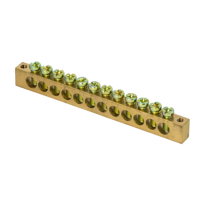 Шины предназначены для присоединения нулевых проводников (шина N) и заземления (шина PE). Шины выполнены из латуни и никелированной латуни. Нулевая шина устанавливается на изоляторе.