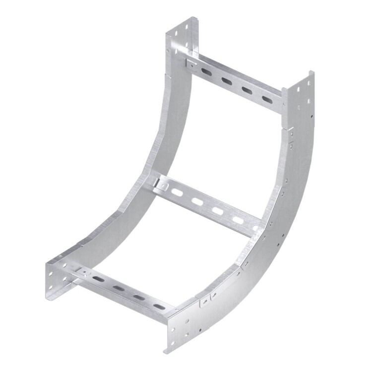 Угол вертикальный внутренний предназначен для организации поворота трассы на основе лестничных лотков с высотой борта 50 мм и шириной основания 400 мм вверх на 90 градусов. Радиус поворота угла - 600 мм. Аксессуар поставляется в комплекте с крепежными элементами и соединительными пластинами, необходимыми для монтажа. Данное изделие представлено в исполнении ‘Сталь, оцинкованная по методу Сендзимира‘.
