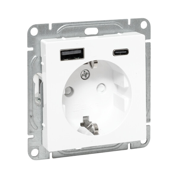 Силовая розетка с двумя USB-портами EKF коллекции «Эпика» с заземлением и защитными шторками - идеальное решение для стильного и безопасного подключения электроприборов.