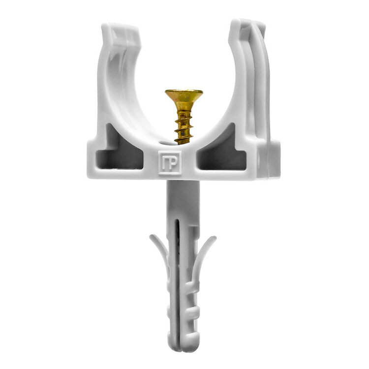 Предназначена для крепления гладких труб ПВХ или гофрированных труб одного диаметра к поверхности стен, потолков, полов или перегородок. Повышенная прочность и надежность клипсы за счет конструктивного объединения с дюбелем.