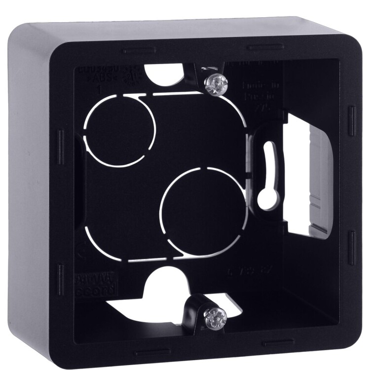 Коробка для накладного монтажа Inspiria, 1 пост, цвет "Антрацит". Коробка предназначена для накладного монтажа механизмов серии Inspiria и позволяет установить 1 механизм из данной коллекции. Конструкция коробки позволяет подключить провода наиболее удобным способом.