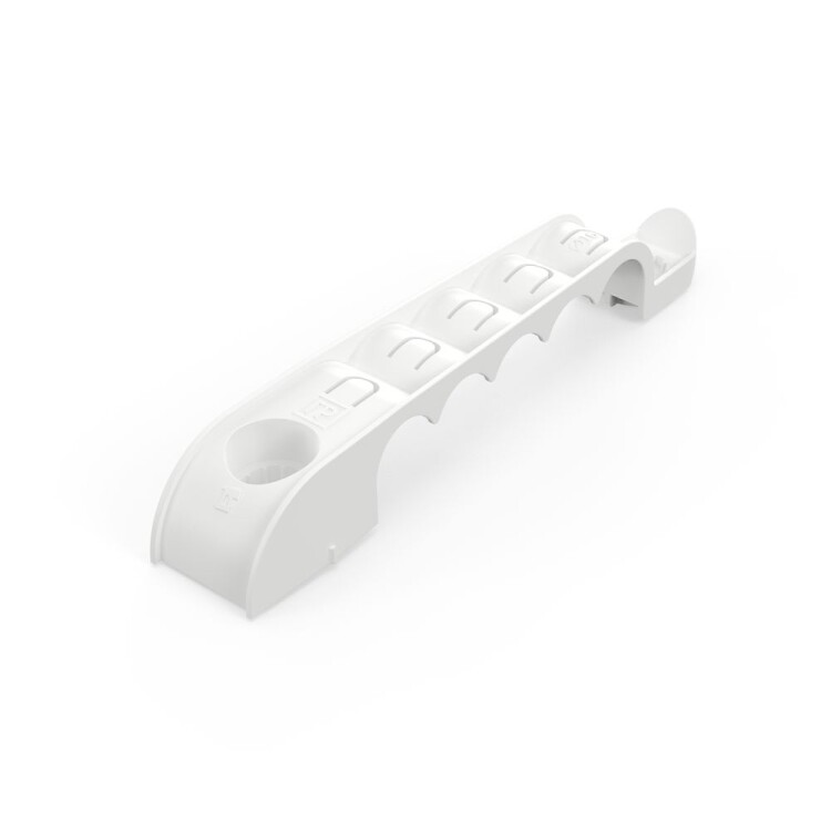 Держатель труб для прямого монтажа односторонний на 5 мест d16 Промрукав - это специализированный крепеж, предназначенный для крепления гофрированных и гладких пластиковых труб диаметром 16 мм. Держатель труб разработан для прямого монтажа, что позволяет осуществлять крепление монтажными пистолетами по бетонным поверхностям, но возможен монтаж и классическим способом, используя дюбели и саморезы. С помощью одностороннего держателя труб можно одновременно смонтировать и закрепить до 5 труб. Данную продукцию можно использовать при прокладке линии внутри помещений или под навесом. При необходимости допускается фиксировать край держателя, в том числе монтажным пистолетом, для обеспечения максимально возможной надежности фиксации трубы.