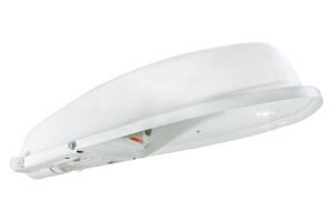 Конструкция: Для технического обслуживания светильника необходимо вывернуть 2 винта в торце светильника, повернуть корпус светильника до вертикального положения. Это обеспечит свободный доступ к дроссельному отсеку, а также к насадке для крепления светильника на кронштейн опоры.