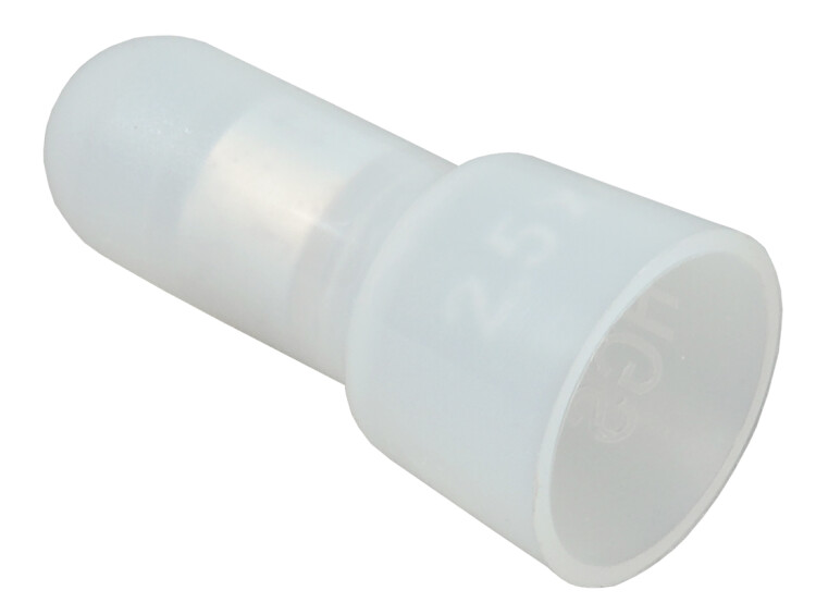 Изолирующий корпус заглушки изготовлен из прозрачного нейлона, который обеспечит визуальный контроль процесса обжатия предварительно зачищенных жил и безопасное использование, предотвращая нежелательный контакт обжатого пучка кабелей с другими предметами. В корпусе изолирующей заглушки расположена трубка из алюминиевого сплава.