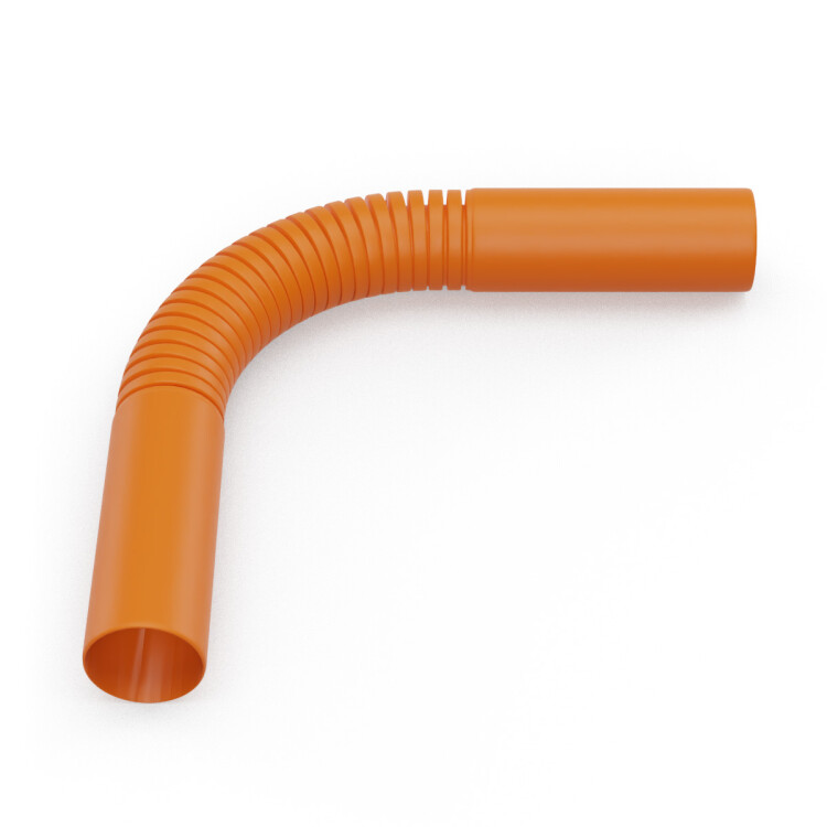 Предназначен для герметичного соединения гладких жёстких труб из пластика под произвольным углом, что позволяет придать более эстетичный внешний вид местам соединения. Используется в случаях сложного монтажа, для обхода препятствий. Минимальный радиус изгиба - 3 внешних диаметра. Ассортимент дополняют повороты оранжевого цвета для использования в комплекте с гладкими и гофрированными труба ми в таком же цвете.