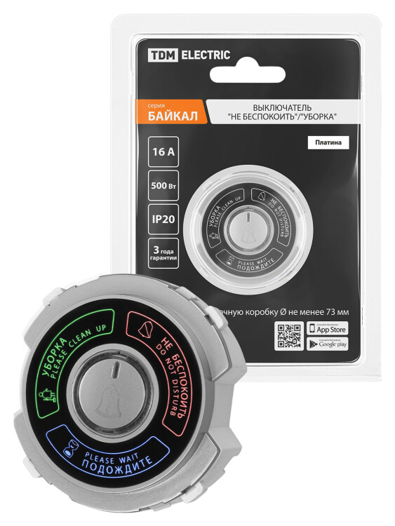 Выключатель "Небеспокоить"/"Уборка" 16А 250В платина, "Байкал" TDM