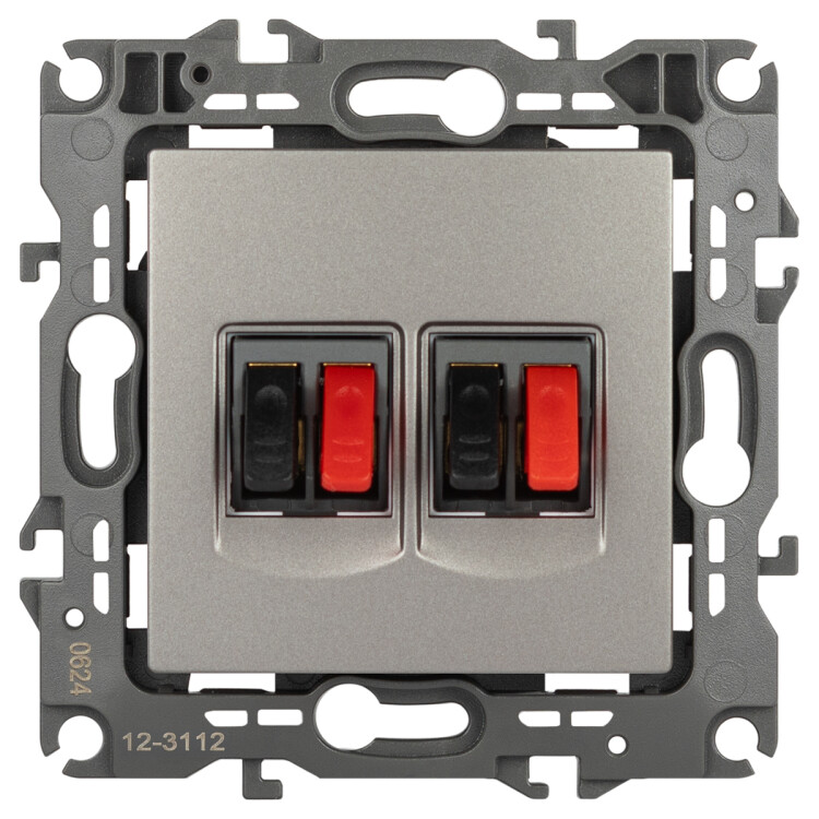 <p>Розетка двойная аудио стерео серии Эра 12 скрытой установки механизм цвет титан 12-3112-16. Сделана из поликарбоната. Монтаж в подрозетник производится и на лапки, и на винты. Рамки приобретаются отдельно.</p>