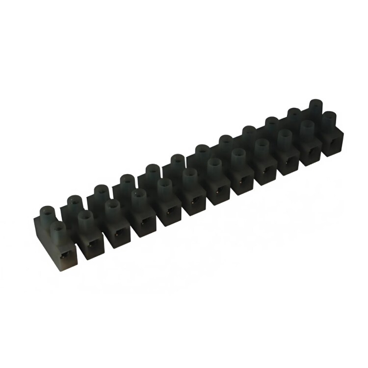 Винтовые клеммные колодки представляют собой надежное решение для соединения проводов в электрических цепях. Эти клеммные зажимы состоят из токопроводящей части, заключенной в прочный диэлектрический корпус из полипропилена, обладающего надежными механическими свойствами: прочность, пластичность, устойчивость к ударам и вибрациям, не деформируется и не трескается, диапазон рабочих температур: от -20 до +85 °С. Цвет корпуса - белый. Материал контактов – бронза (OT58) с никелевым покрытием (Ni). Классические винтовые клеммы обеспечивают прочное и долговечное соединение проводников, значительно упрощают монтажные работы и предотвращают перегрев в местах контактов. Номинальные параметры колодок составляют: напряжение до 450 В, ток до 32 А, максимальное сечение подключаемого провода - 4 мм2. Конструкция предусматривает 12 полюсов.