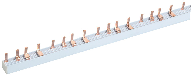 Применяются для удобного и безопасного соединения групп: ВА (выключатели автоматические), АД (автоматы дифференциальные), ВД (выключатели дифференциальные), ВН (выключатели нагрузки). Шины с шагом 18 мм предназначены для коммутации аппаратуры шириной, кратной одному модулю, шины с шагом 27 мм предназначены для коммутации изделий шириной, кратной полутора модулям. Шины, рассчитанные на номинальный ток 100А, могут быть использованы с номинальным током 125 А, если вводной автомат подключать по центру. Для полуторамодульных шин имеются боковые заглушки.