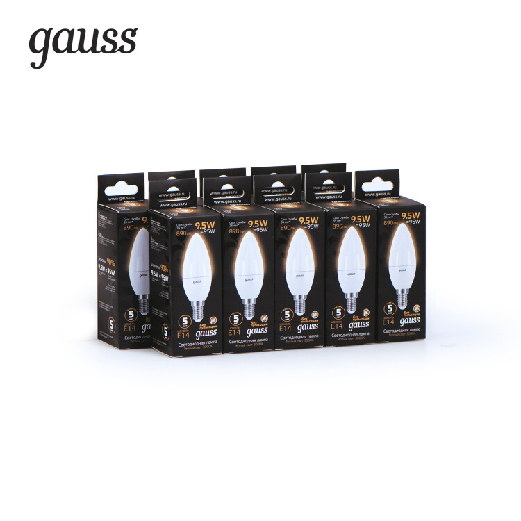 Лампа Gauss Свеча 9.5W 890lm 3000К E14 LED 1/10/100