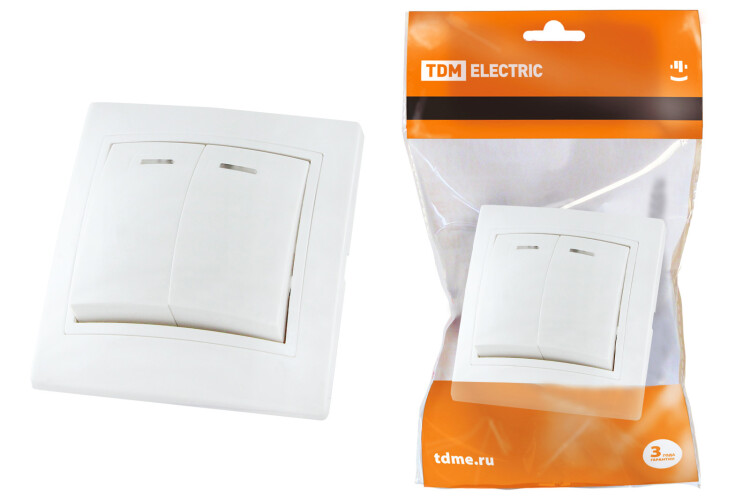 Выключатель двухклавишный с подсветкой 10А белый "Таймыр" TDM применяется для: