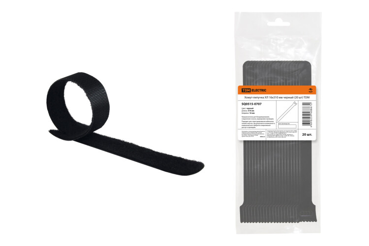 Хомут-липучка ХЛ 16х310 мм черный (20 шт) TDM