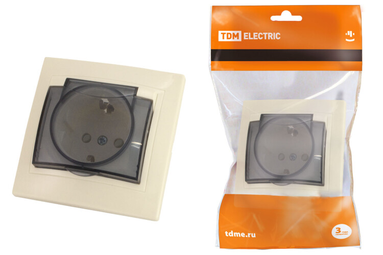 Розетка с заземлением с защитными шторками и крышкой 16А 250В IP42 слоновая кость "Таймыр" TDM применяется для: