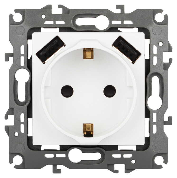 <p>Розетка с заземлением с USB со шторками серии Эра 12 скрытой установки механизм цвет белый матовый 12-4109-01М. Номинальные характеристики 16А 250В/3А-5В. Сделана из поликарбоната. Монтаж в подрозетник производится и на лапки, и на винты. Рамки приобретаются отдельно.</p>