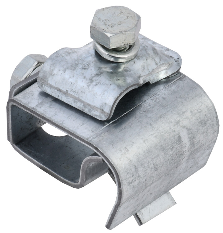 Держатель проводника круглого 8 – 10 мм для желоба водостока товарного знака IEK используется для закрепления прутка на желобе водостока. Пластины под фальц кровли прижимаются к основе держателя болтами М8.
