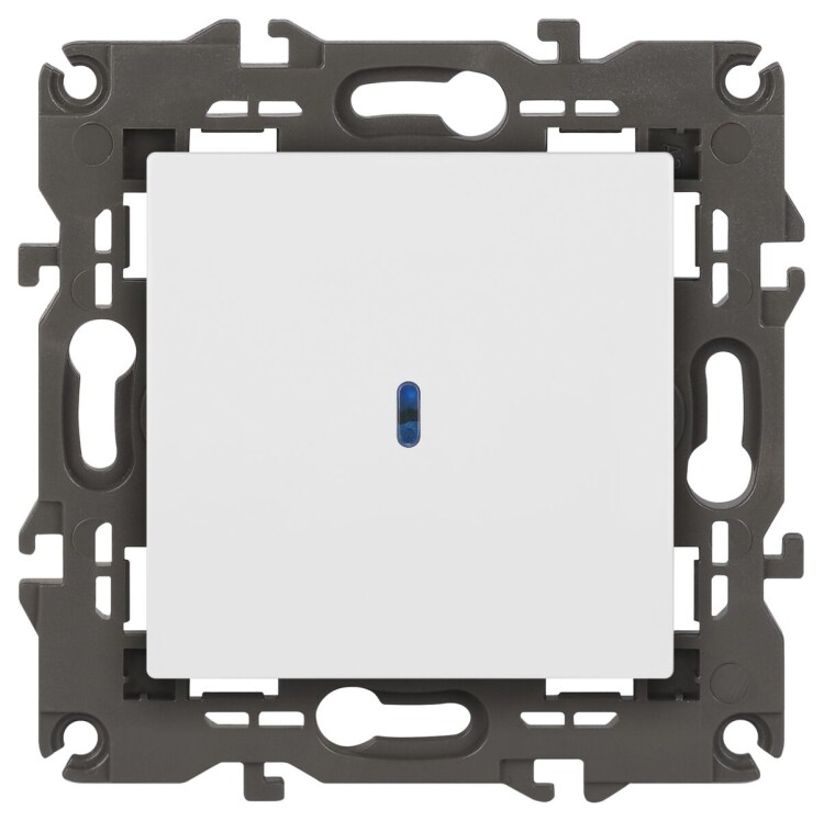 Выключатель 1-клавишный подсветка Эра Elegance белый 14-1102-01. Оснащён автоматическими клеммами для надёжной фиксации жил кабеля в механизме. Рамки приобретаются отдельно.