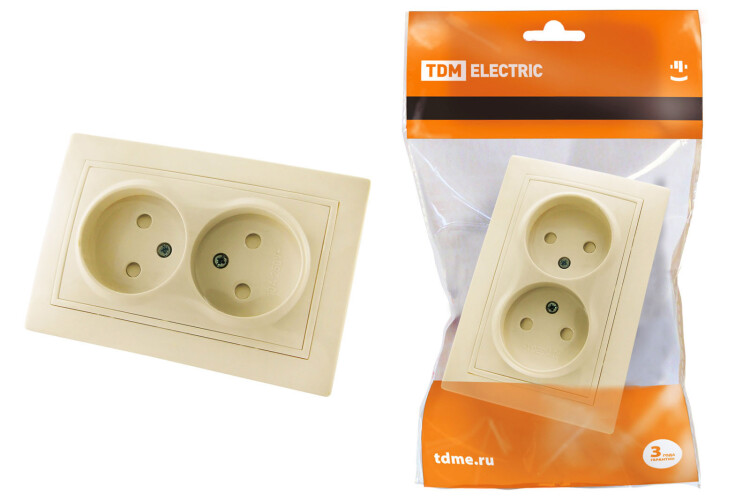 Розетка двойная с заземлением с защитными шторками 10А 250В слоновая кость "Таймыр" TDM применяется для: