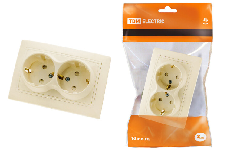 Розетка двойная с заземлением с защитными шторками 16А 250В слоновая кость "Таймыр" TDM применяется для: