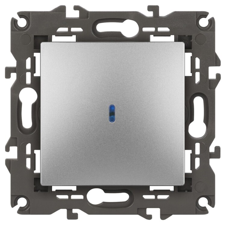 Выключатель 1-клавишный подсветка Эра Elegance алюминий 14-1102-03. Оснащён автоматическими клеммами для надёжной фиксации жил кабеля в механизме. Рамки приобретаются отдельно.