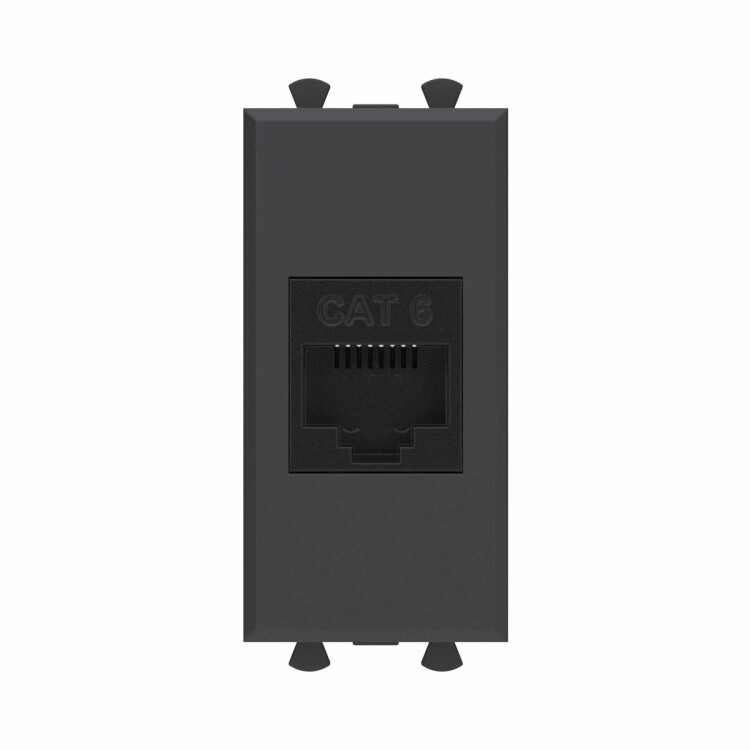 Компьютерная розетка используется для подключения компьютерной техники и соединения с патч-панелью, предназначена для комплектации систем организации рабочих мест (кабель-каналов, лючков, башенок, колонн). Розетка RJ-45 категории 6 может использоваться для организации сетей с частотой до 250 МГц и передавать данные на большие расстояния. Материал розетки - металл, термопласт.Пластиковые детали из делия выполнены в цвете ""Черный матовый"".