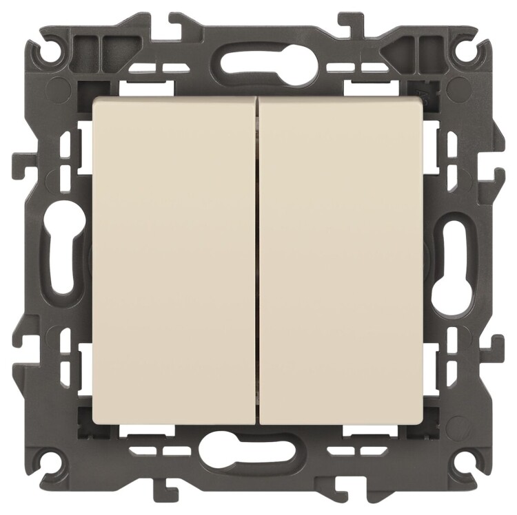 Выключатель 2-клавишный Эра Elegance слоновая кость 14-1104-02. Оснащён автоматическими клеммами для надёжной фиксации жил кабеля в механизме. Рамки приобретаются отдельно. Рамки Эра Elegance ПЛАСТИК: 1 пост 14-5001-хх, 2 поста 14-5002-хх, 3 поста 14-5003-хх, 4 поста 14-5004-хх, 5 постов 14-5005-хх; СТЕКЛО: 1 пост 14-5101-хх, 2 поста 14-5102-хх, 3 поста 14-5103-хх, 4 поста 14-5104-хх; МЕТАЛЛ: 1 пост 14-5201-хх, 2 поста 14-5202-хх, 3 поста 14-5203-хх, 4 поста 14-5204-хх; ДЕРЕВО: 1 пост 14-5301-хх, 2 поста 14-5302-хх, 3 поста 14-5303-хх, 4 поста 14-5304-хх (хх - код цвета: 00-прозрачный, 01-белый, белёный дуб, 02-слоновая кость, 03-алюминий, 04-шампань, 05-чёрный, чёрное дерево, 07-ясень, 09-дуб, 10-венге, 11-клён, 14-медь, 21-жёлтый, 22-оранжевый, 23-красный, 25-бордо, 26-лайм, 27-зелёный, 28-голубой, 29-синий, 30-розовый, 31-мокко, 32-серый, 41-сталь, 42-титан).