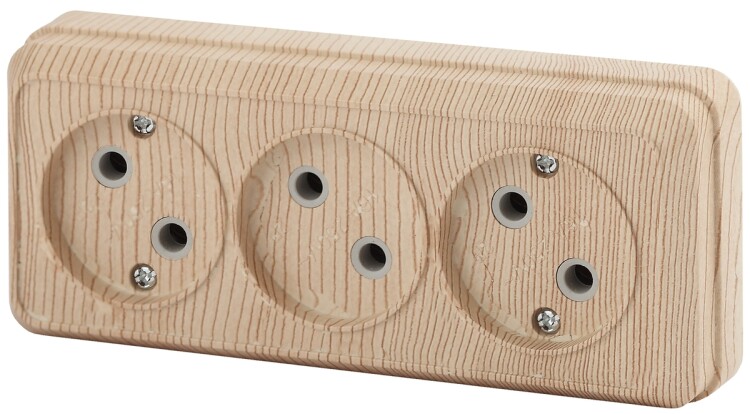 <p>Розетка Intro Quadro 2-205-11 без заземления трехместная 3х2P, 16А-250В, IP20, ОУ, сосна</p>