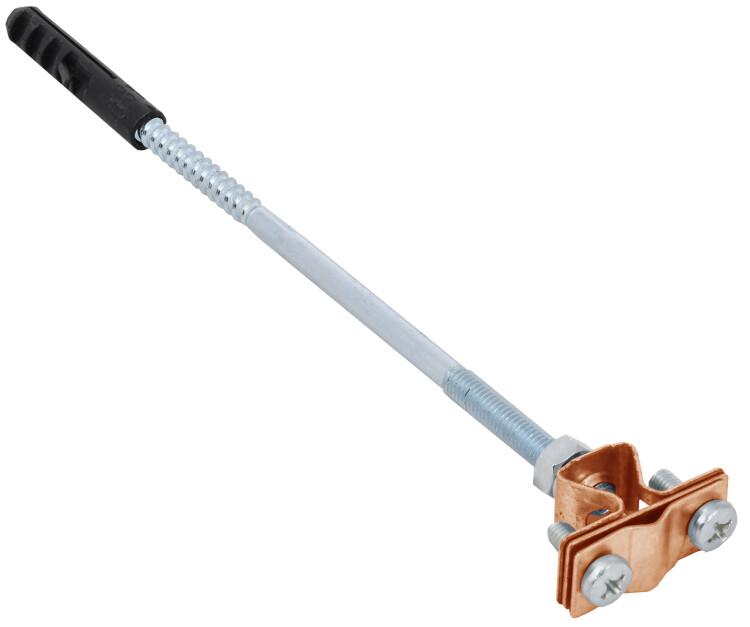 Держатель проводника круглого 8 – 10 мм для бетонного фасада товарного знака IEK используется для крепления круглых проводников на бетонном фасаде здания. Держатель выполнен на основе металлических проводника круглого, закрепленного на шпильке по бетону. Шпилька имеет дюбель, который позволяет закрепить держатель в бетонной конструкции. Держатель позволяет закрепить проводник на расстоянии 120 мм от фасада.