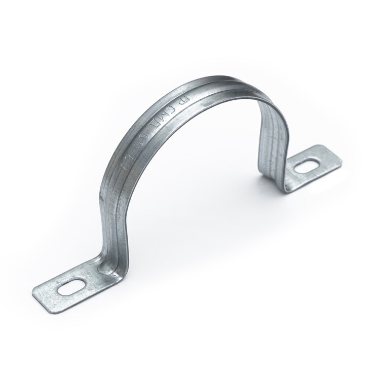 Скоба металлическая двухлапковая усиленная противопожарная (СМДУ), предназначена для крепления металлорукава, металлических и пластиковых труб к различным несущим поверхностям, а также для монтажа кабельной продукции. Изготавливается с овальным отверстиями 10х5мм (скобы диаметром от 6 до 40мм), и 10х6мм (скобы диаметром от 48-63мм), что обеспечивает возможность установки самореза с пресс-шайбой диаметром 4,2мм. Конструкция скоб соответствует ГОСТ 17678-80. Скобы металлические изготавливаются из оцинкованной стали (по ГОСТ 14918), толщиной от 0,9 до 1,9мм. Применяются в ОКЛ.