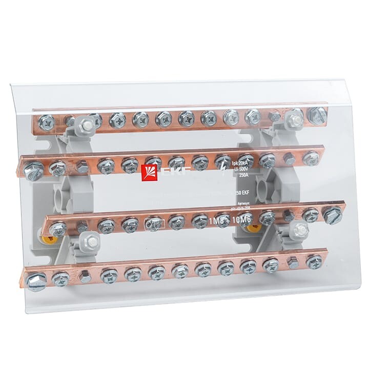 Шинные распределительные блоки ШРБ EKF PROxima применяются в качестве надежных клеммных зажимов при создании упорядоченных систем в распределительных шкафах. Блоки устанавливаются на DIN-рейку или монтажную пластину. Материал контактов – латунь или медь, в зависимости от типоисполнения; материал корпуса – негорючий полиамид РА66; материал винтов – оцинкованная сталь.