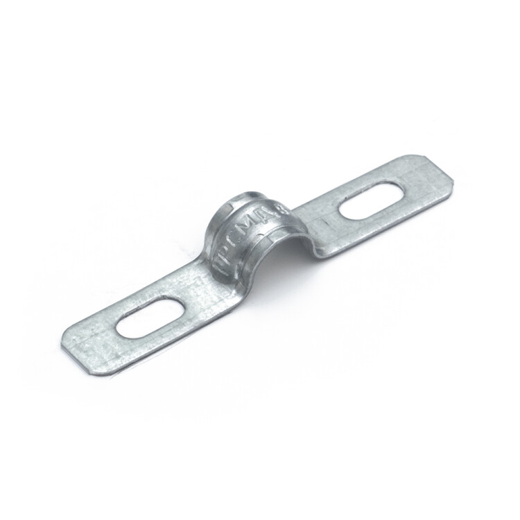 Скоба металлическая двухлапковая усиленная противопожарная (СМДУ), предназначена для крепления металлорукава, металлических и пластиковых труб к различным несущим поверхностям, а также для монтажа кабельной продукции. Изготавливается с овальным отверстиями 10х5мм (скобы диаметром от 6 до 40мм), и 10х6мм (скобы диаметром от 48-63мм), что обеспечивает возможность установки самореза с пресс-шайбой диаметром 4,2мм. Конструкция скоб соответствует ГОСТ 17678-80. Скобы металлические изготавливаются из оцинкованной стали (по ГОСТ 14918), толщиной от 0,9 до 1,9мм. Применяются в ОКЛ.