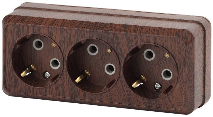 <p>Розетка Intro Quadro 2-206-10 с заземлением трехместная 3х2P+E, 16А-250В, IP20, ОУ, венге</p>