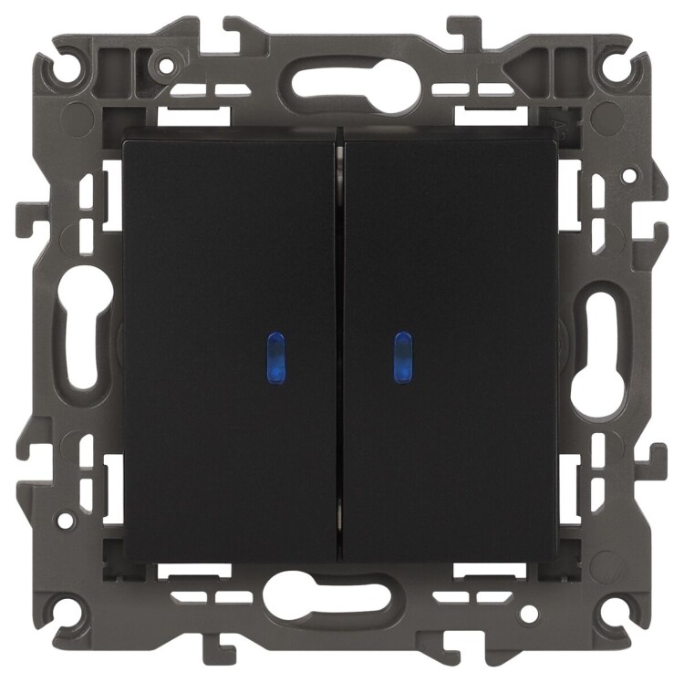 Выключатель 2-клавишный подсветка Эра Elegance антрацит 14-1105-05. Оснащён автоматическими клеммами для надёжной фиксации жил кабеля в механизме. Рамки приобретаются отдельно. Рамки Эра Elegance ПЛАСТИК: 1 пост 14-5001-хх, 2 поста 14-5002-хх, 3 поста 14-5003-хх, 4 поста 14-5004-хх, 5 постов 14-5005-хх; СТЕКЛО: 1 пост 14-5101-хх, 2 поста 14-5102-хх, 3 поста 14-5103-хх, 4 поста 14-5104-хх; МЕТАЛЛ: 1 пост 14-5201-хх, 2 поста 14-5202-хх, 3 поста 14-5203-хх, 4 поста 14-5204-хх; ДЕРЕВО: 1 пост 14-5301-хх, 2 поста 14-5302-хх, 3 поста 14-5303-хх, 4 поста 14-5304-хх (хх - код цвета: 00-прозрачный, 01-белый, белёный дуб, 02-слоновая кость, 03-алюминий, 04-шампань, 05-чёрный, чёрное дерево, 07-ясень, 09-дуб, 10-венге, 11-клён, 14-медь, 21-жёлтый, 22-оранжевый, 23-красный, 25-бордо, 26-лайм, 27-зелёный, 28-голубой, 29-синий, 30-розовый, 31-мокко, 32-серый, 41-сталь, 42-титан).