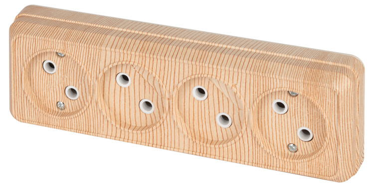 <p>Розетка четырехместная серии Intro Quadro открытой установки цвет сосна 2-207-11. Номинальные характеристики 16А 250В. Розетка выполнена из пластика (термопласт), оснащёна винтовыми зажимами.</p>