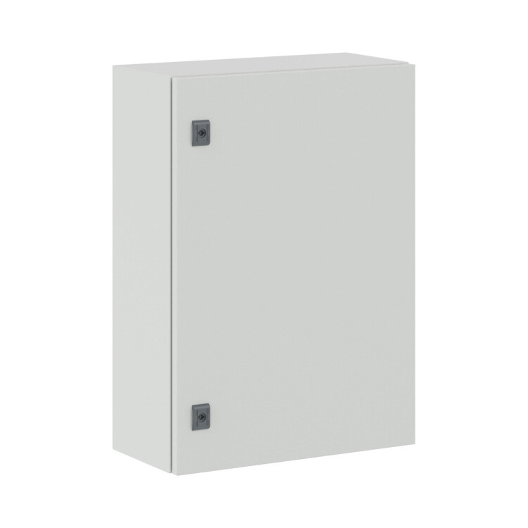 Навесные корпуса STE предназначены для систем автоматизации и распределения электроэнергии. Корпус, дверь, фланец STE изготавливаются из стали толщиной 1,5 мм с атмосферостойким порошковым покрытием, цвет RAL7035. Монтажная плата – из оцинкованной стали 1,8 мм. Корпуса выполнены по технологии сварки из единого листа металла, что обеспечивает высокую нагрузочную способность и защиту от вибраций. Степень защиты IP66, ударопрочность IK10, сейсмостойкость 9 баллов по шкале MSK-64, климатическое исполнение УХЛ1, ОМ2, ОМ3, группа горючести Г1. Комплект поставки – корпус, дверь реверсивная, монтажная плата, дверные рейки, поворотный замок 2 шт., сплошной фланец для ввода кабеля 1 шт., комплект заземления с проводами заземления. Габариты 700x500x250 (ШхВхГ) мм.