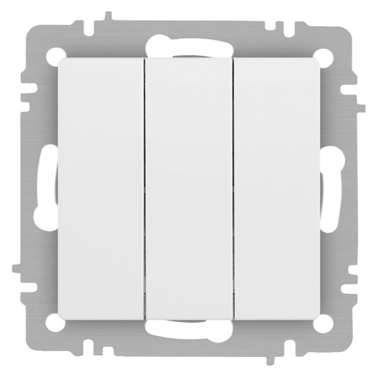 <p>Выключатель 3-клавишный серии Intro Accent скрытой установки механизм цвет белый матовый 6-106-01М. Номинальные характеристики 10А 250В. Выполнен из негорючего термопласта, оснащён винтовыми клеммами. Парные клеммы обеспечивают соединение шлейфом. Монтаж в подрозетник производится и на лапки, и на винты. Рамка приобретается отдельно. В серии представлены рамки до 5 постов: на 1 пост - 6-501-хх, на 2 поста - 6-502-хх, на 3 поста - 6-503-хх, на 6 поста - 4-504-хх, на 5 постов - 6-505-хх (где хх - цветовой код: 01 - белый, 01М - матовый белый, 02 - слоновая кость, 03 - алюминий, 04 - шампань, 05 - антрацит, 06 - перламутр, 07 - графит, 08 - бронза, 09 - титан, 10 - венге, 11 - сосна)</p>